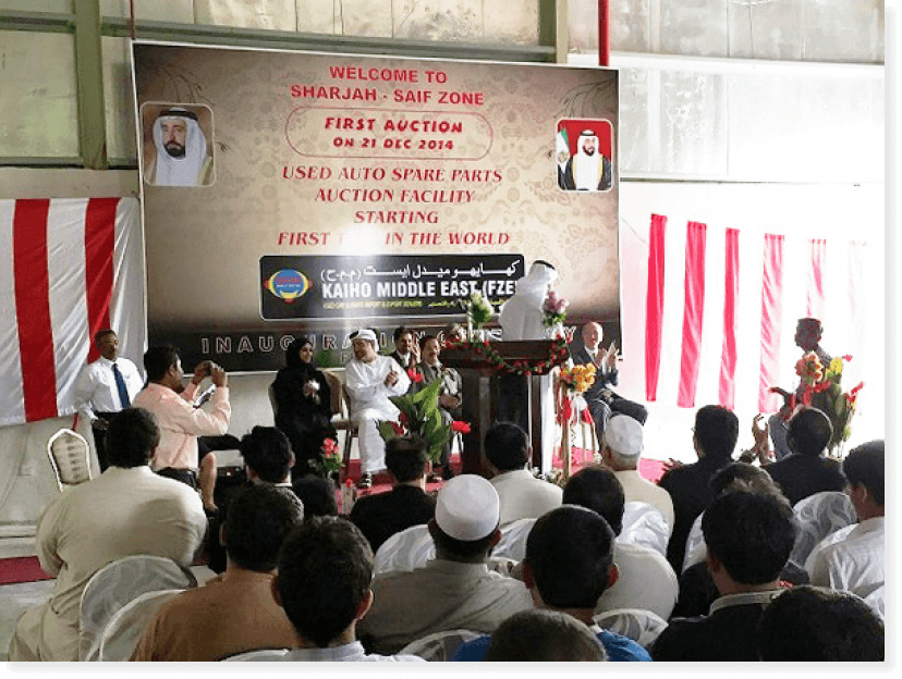 We operate used auto parts auctions not only in Japan but also overseas. In the UAE’s Sharjah emirate, where there is an active used parts market, we established a subsidiary called KME and set up a local auction venue. Our auctions are based on the concept of being fair and open to everyone, attracting many customers.