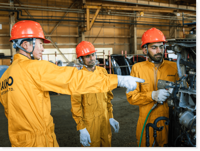 会宝産業では「車のあとしまつ」を通して、地球環境に貢献することを目指しています。そのためには、自動車リサイクル業の正しい知識を持った人材が不可欠です。会宝産業は「国際リサイクル教育センターIREC(アイレック)」を開設しました。日本に限らず海外からも研修生を受け入れ、正しい自動車リサイクルの方法を伝えます。ここでは技術ノウハウの習得だけでなく、日本の精神や文化、人材の育成といった面でも力を注いでいます。