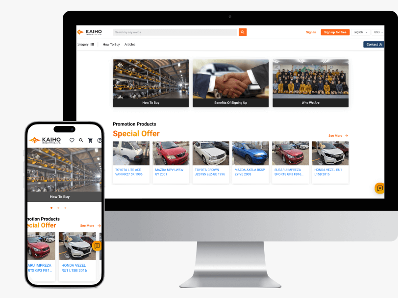 海外顧客向けに中古車や中古車エンジン・部品を販売するEC(電子商取引)サイト「Kaiho Industry EC Site(ePartsWorld)」を2022年8月31日に本格オープンしました。ECサイトでは、在庫商品に加えて、国内で調達可能なリサイクル部品や中古車を海外からオンラインで購入し、コンテナを出荷することができます。また世界ではじめて、海外顧客が希望の部品を注文できる「カタログオーダー」の仕組みを搭載しています。在庫がないリサイクル部品でも、注文を受けてから国内で該当部品を探し、販売につなげることができます。