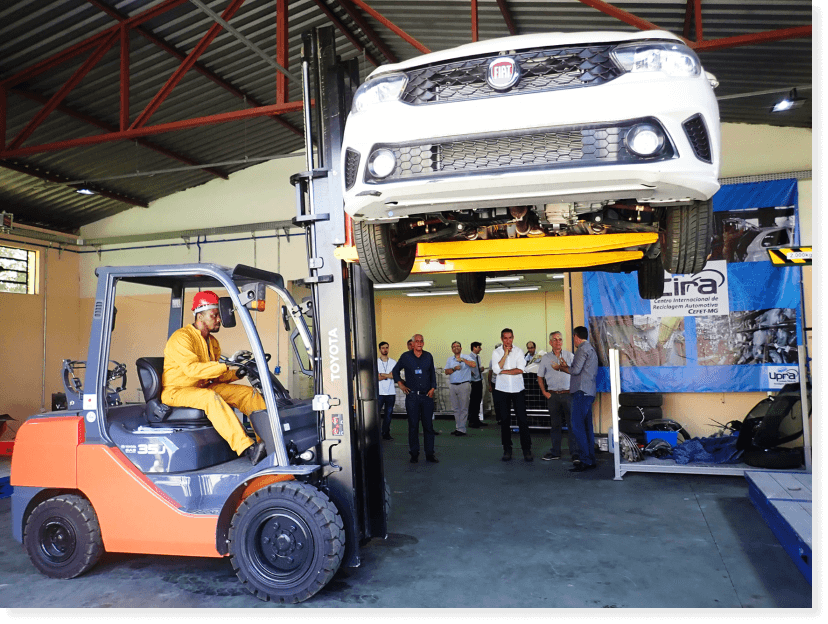 「海外へのリサイクル工場の輸出・建設」をめざす会宝産業は、ブラジル・ミナスジェライス州の国立工業技術専門学校内に自動車リサイクル事業をおこなうパイロットプラントと研修センターを設立しました。ブラジルでは現在自動車リサイクルのノウハウがあまり普及しておらず、業界全体で人材が不足していることが挙げられます。人材は主に技術学校からの受け入れが多く、自動車リサイクル業に関する知識や解体技術を学ぶことができます。